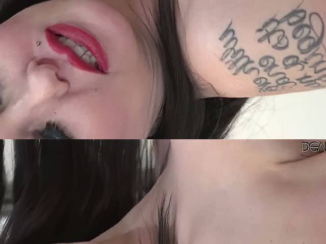 Busty brunette white girl Harley Valley plays with a huge dildo