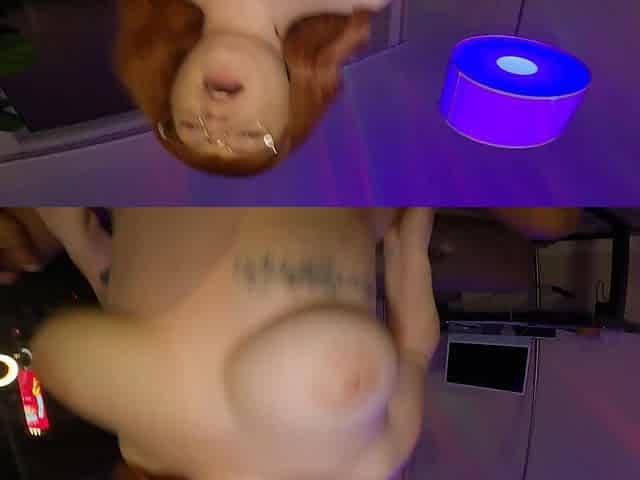 Gothic big beautiful woman playing with her large bazookas and a ebony vibrator