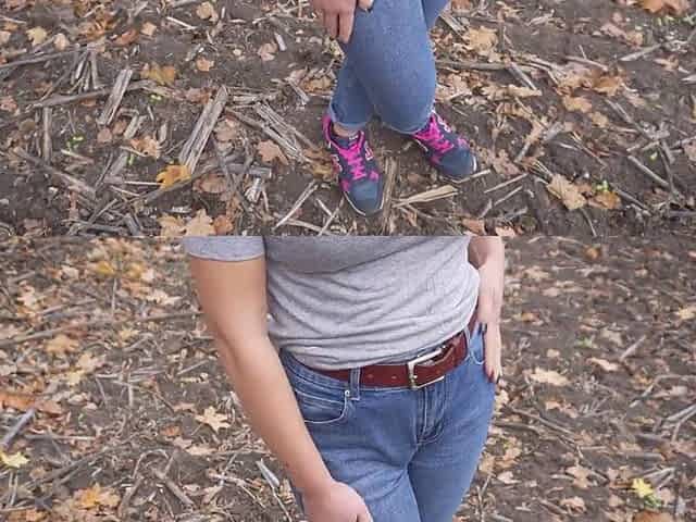 Milf teasing her thick cameltoe in tight blue jeans outdoors