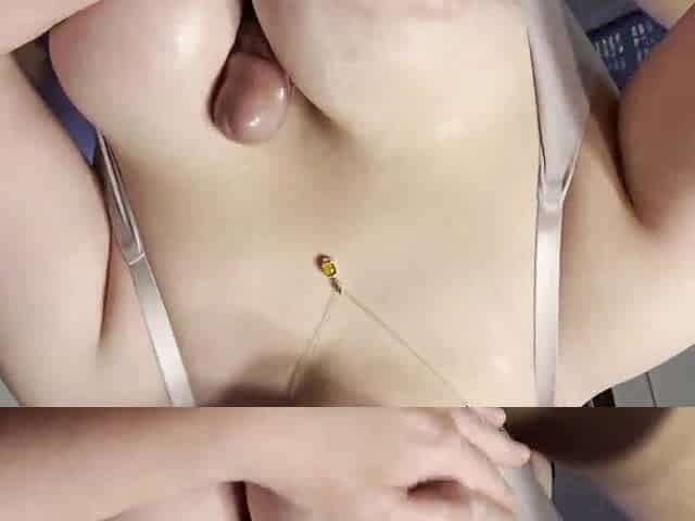Large natural bazookas teen gets cum between boobs