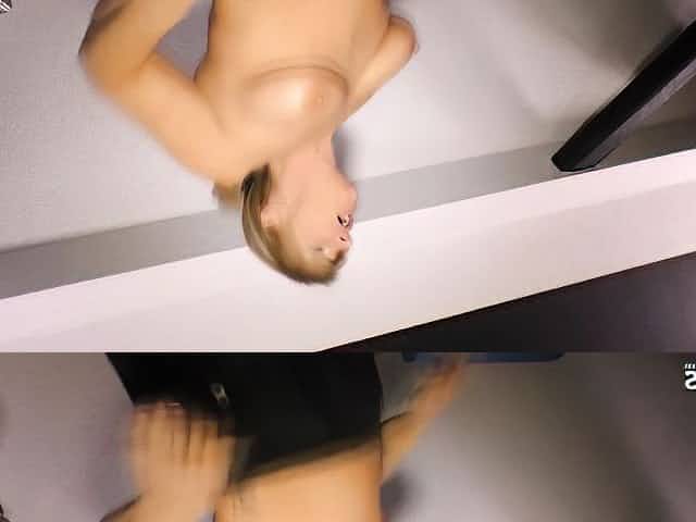 Chubby blonde sweetie with big belly masturbates by the mirror