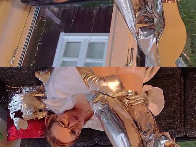 Chubby German housewife in tight boots and natural boobs