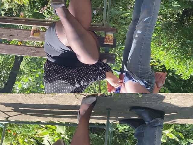 Mother-in-law's wet pussy oozes hot juice outdoors