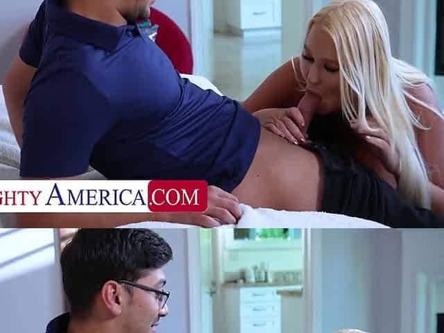 Busty Blonde Gets Pussy Filled With Delivery Mans Hot Cream With Max Fills And London River