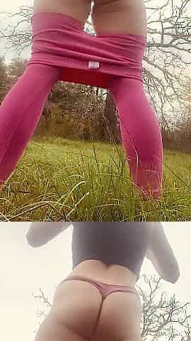 Exhibitionist twerking out in nature in constricted leggings and a bit of anal play