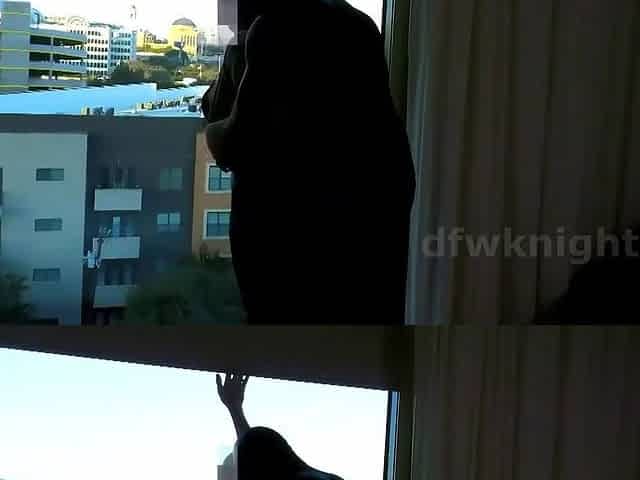 Business woman in satin dress, nylon stockings and high heels, sex in the window - business-bitch