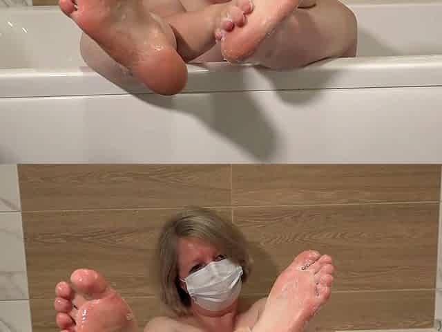 Do you want to wash my feet? Foot fetish from a mature milf in the bath.