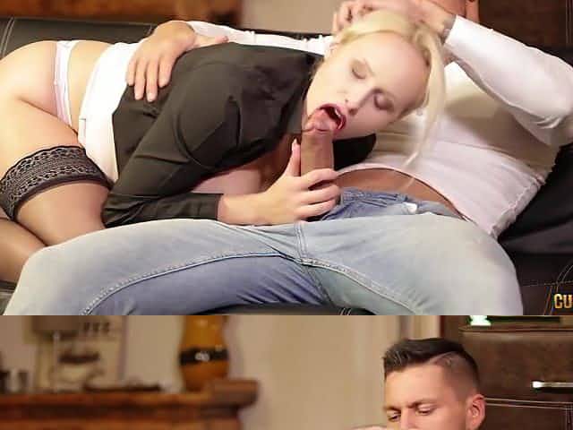 HD POV video of blonde Mellanie Monroe sucking a large cock