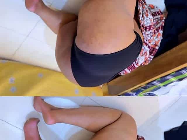 Curvy Muslim aunty Aria Mia gets stuck under the bed