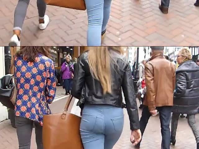 Candid blonde teen with bubble ass in tight blue jeans