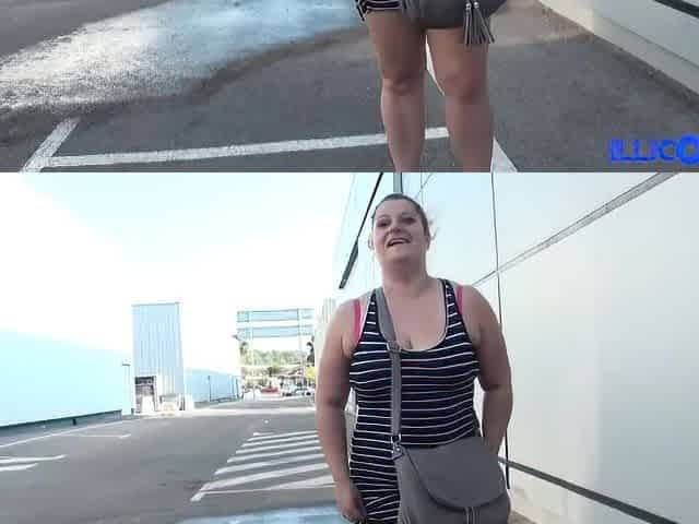 Fat chubby housewife with big natural tits at public EroCom Date pick up with facial