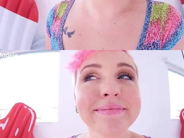 CAROLINE CROSS aka MILEY MAY Cute Cubby Blond Coed Massive Ramrod POV Oral pleasure and Cum Gulp