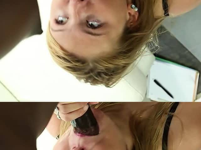 Nerdy blonde Alice gets her pussy kissed and banged in POV clip