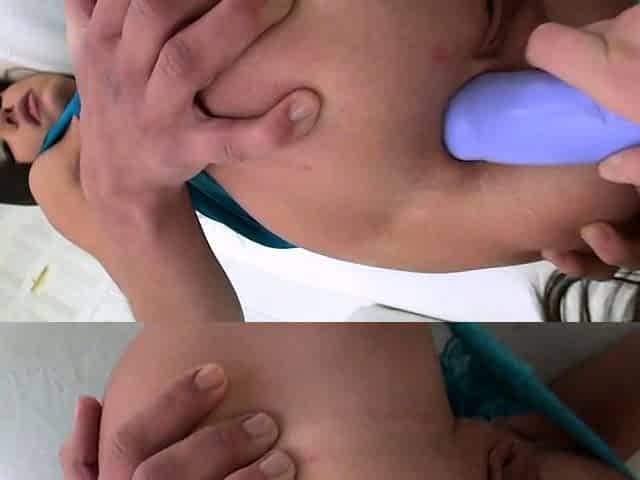 Huge labia of busty blonde teen stroked with sex toys