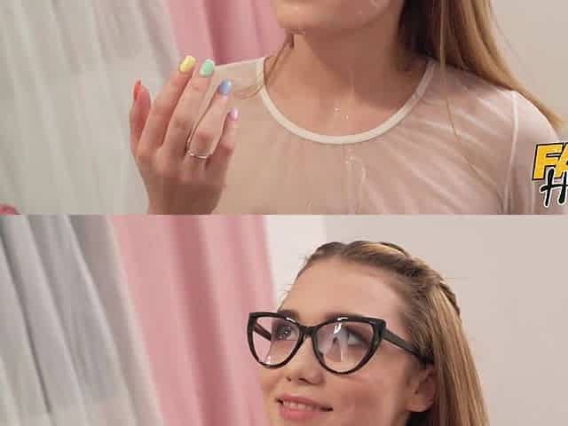 Slutty schoolgirl creampied in her clean shaven vulva by a