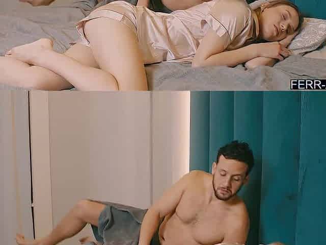 Cleaner takes a rest during work surprised guest wakes her up to bang her