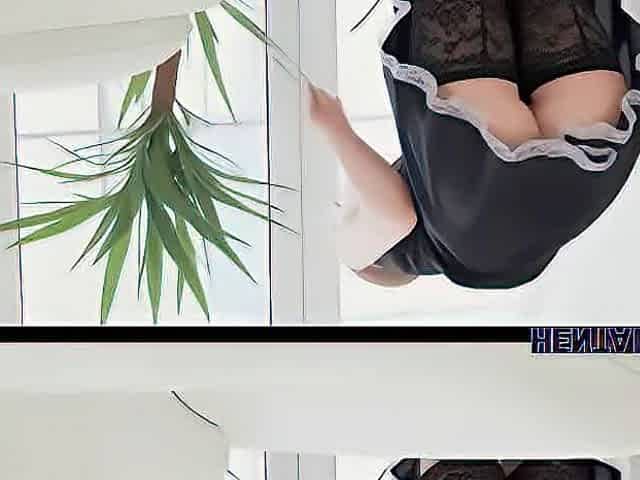 I showed off my big dick to the sexy maid and she ended up giving it a good scrub...