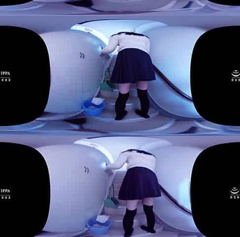 Hinata Suzumori - Cute Flashing Her Panties While she Cleans the Steps in Thigh-High Socks - MUGONVR