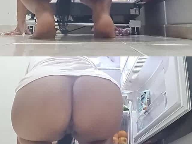 CAMERA CATCHES stepmother cleaning the refrigerator (SEXY)