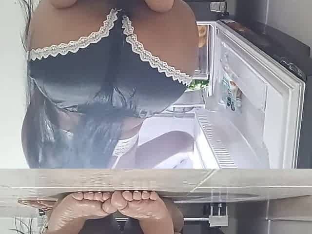 CAMERA CATCHES maid cleaning the refrigerator (SEXY)