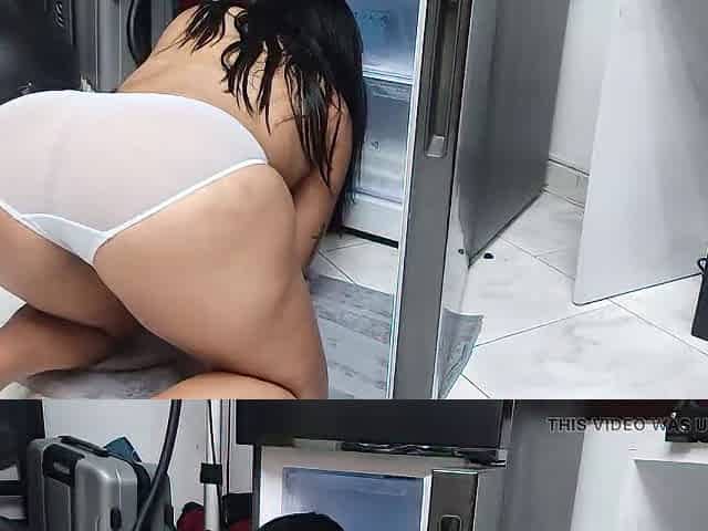 The Voluptuous Maid Sweeps Away While Cleaning the Fridge