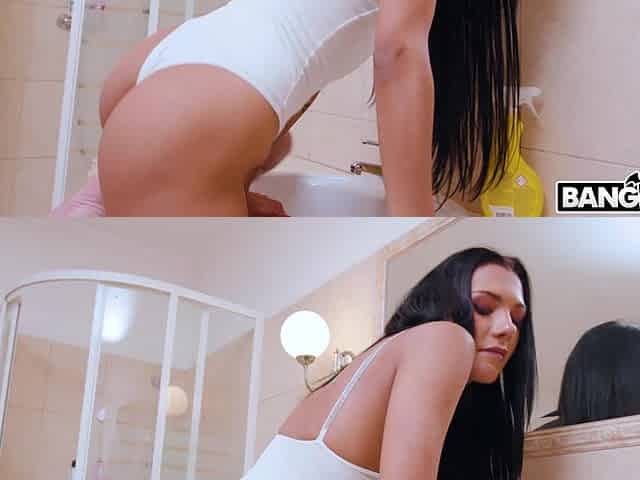 Curvy Megan Fiores Ass Bounces As She Bends Over To Clean The Bathroom & Makes Tommy Crazy To Fuck Her