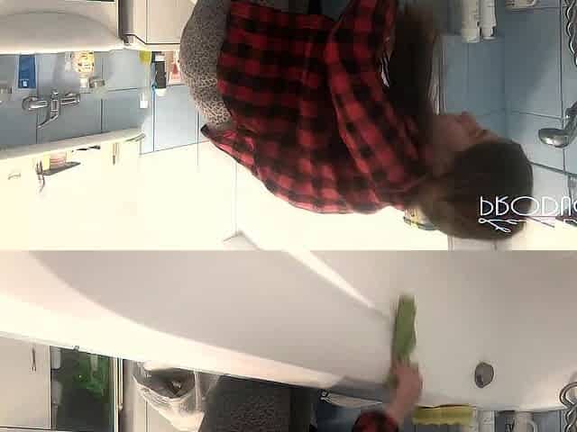 I discover my marvelous step cousin washing and cleaning I stayed to watch her large booty