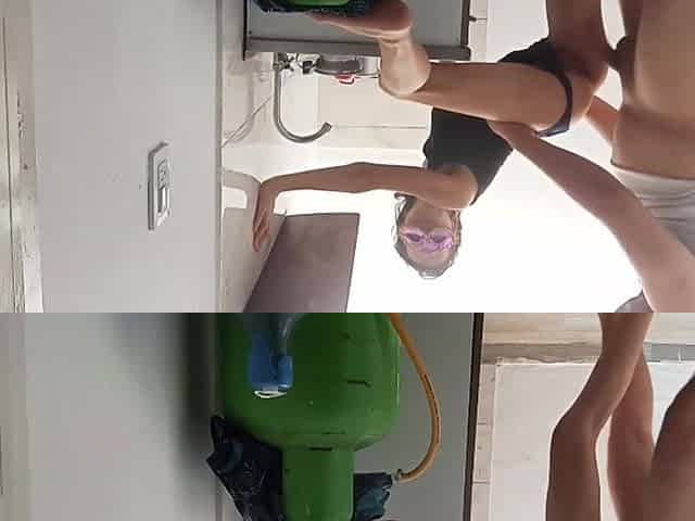 Whilst I clean the patio I have a fun having lesbo sex outdoors
