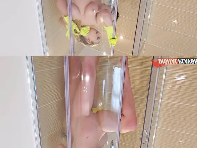 Super Hot Blondes Scrubs Herself Clean For Dirty Sex