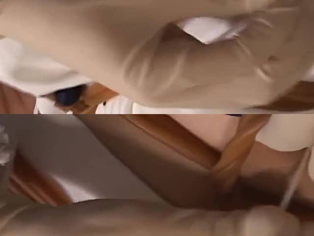 18 yo thin school girl cleans the bathroom with no panties. Hidden camera.