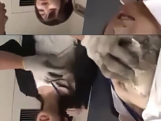 2 Office Ladies Getting Their Tits Rubbed Nipples Sucked By A Cleaner In The Restroom