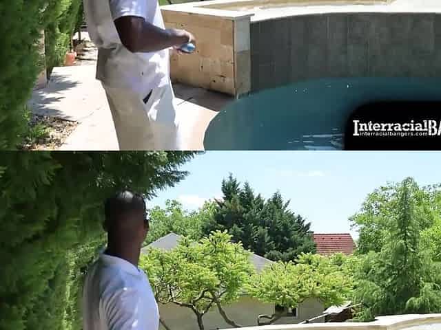 Sara Retail invites the shy gardener in the pool to clean her hole