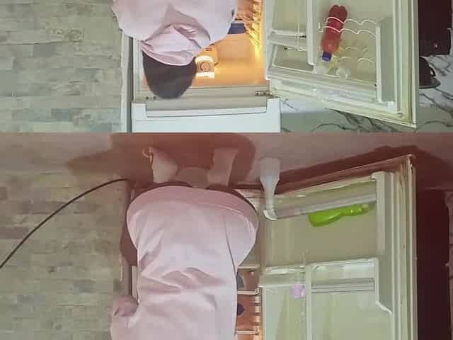 Hot stepsister is filmed cleaning