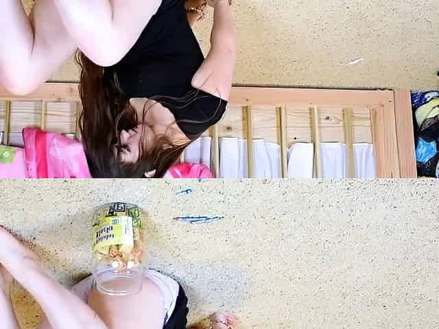 Slim hotty cleans herself with her boyfriend's void urine