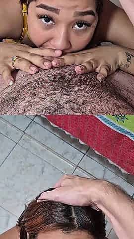 I buy the cleaning lady smth to eat and in gratitude that babe shows me her large boobs with milk.