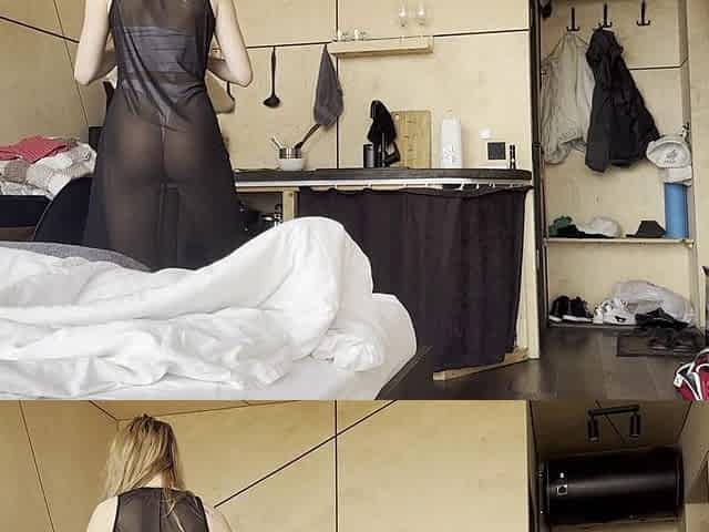 Girl with Ponytails Cleaning Her Flat Without Panties!