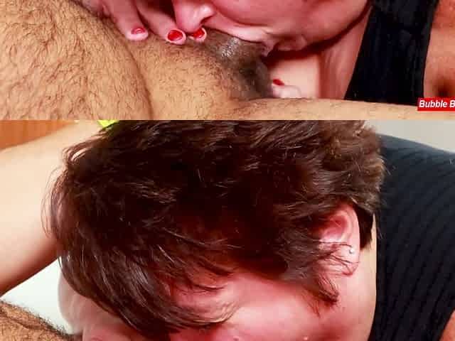 Horny ash-blonde MILF with big boobs gives a wild knob job and gets her pussy licked clean