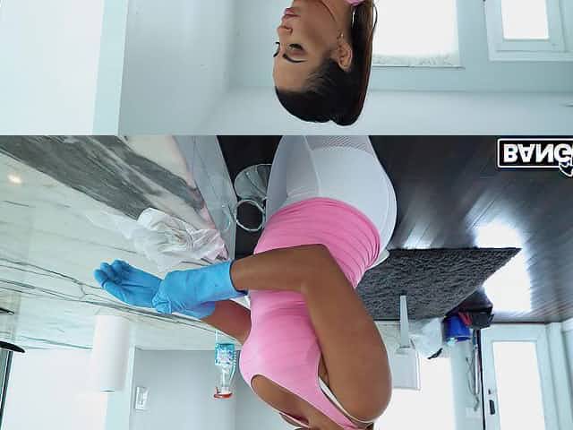 Latina maid Samantha Rose is cleaning the floor