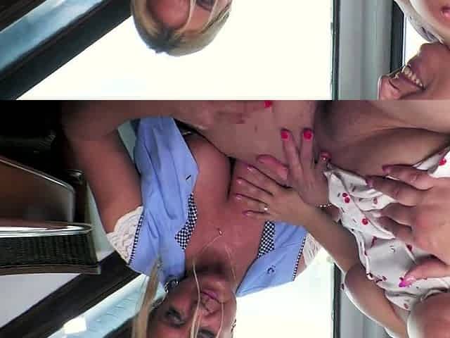 Sexually excited floozy takes a break from work to clean 2 knobs