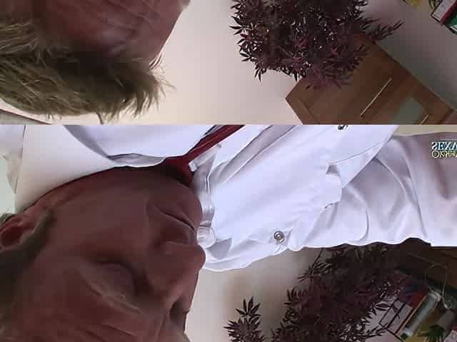 21 year old redhead slut in stockings bred by old doc in clinic