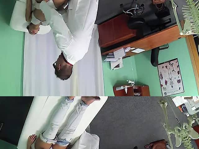 A patient goes to the gynecologist and ends up getting a cumshot in her pussy.