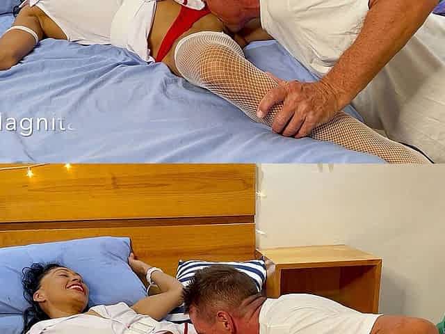 Horny nurse fucks patient's big cock to make him feel better at hospital