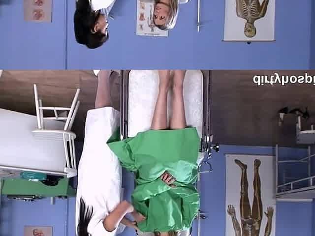 Nurse and patient in lesbian action in fake hospital