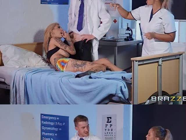 Tattooed blonde bitch, Bonnie Rotten and a horny doctor are fucking, while in the hospital