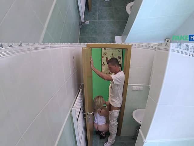 A doctor gets head in the restroom from a sexy young lady. Pt.2