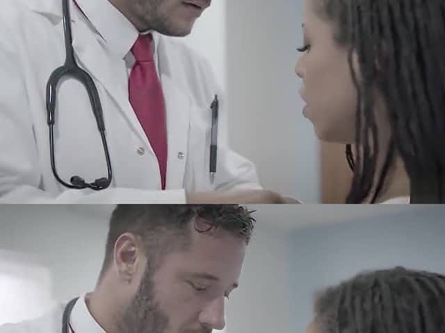 Ebony babe with curly hair, Xianna Hill is getting fucked in the hospital, during her working hours