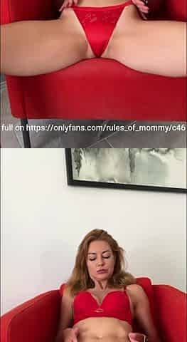 Slender mother I'd like to fuck in red lace underware gently rubs her soaked snatch and swollen love button