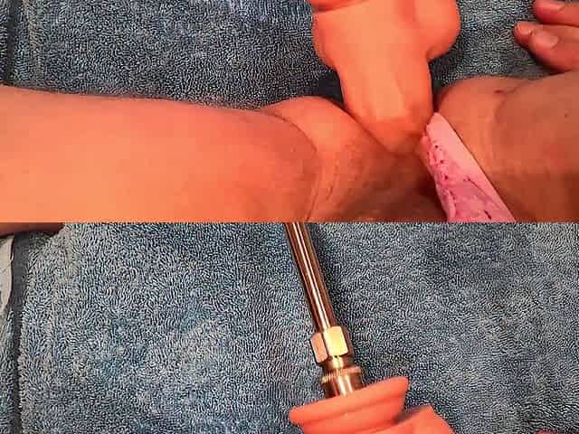 Flabby clitty in pants on the banging machine