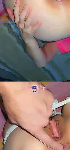 her fingers are very gently caressing a small clitoris