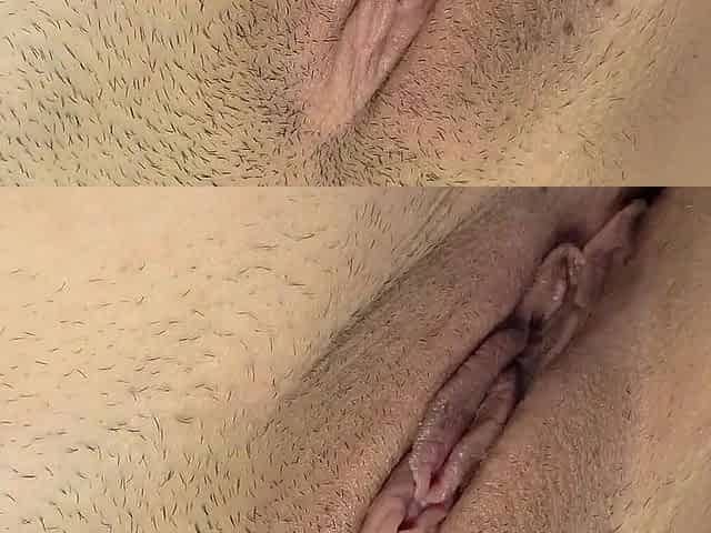 Jerking off His Dick Until Cumshot on My Hairy Pussy with Big Lips